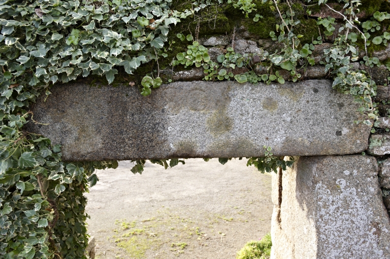 Date portée, linteau de la porte piétonne du mur de clôture.Immatriculation