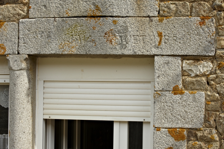 Détail linteau sculpté et datéImmatriculation