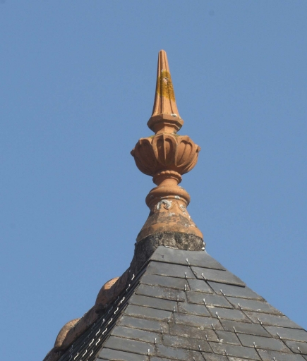 Détail de l'épi de faîtage en terre cuiteImmatriculation