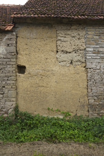 Alignement de plusieurs maisons : détail d'un mur en terreImmatriculation