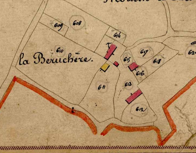 La Béruchère sur le cadastre de 1833.Immatriculation