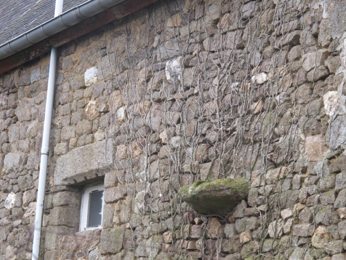 Pierre d'écoulement sur la façade arrière du logis aligné avec un autreImmatriculation