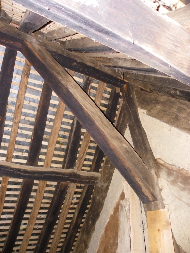 Vue de la charpente et de la toiture.Immatriculation