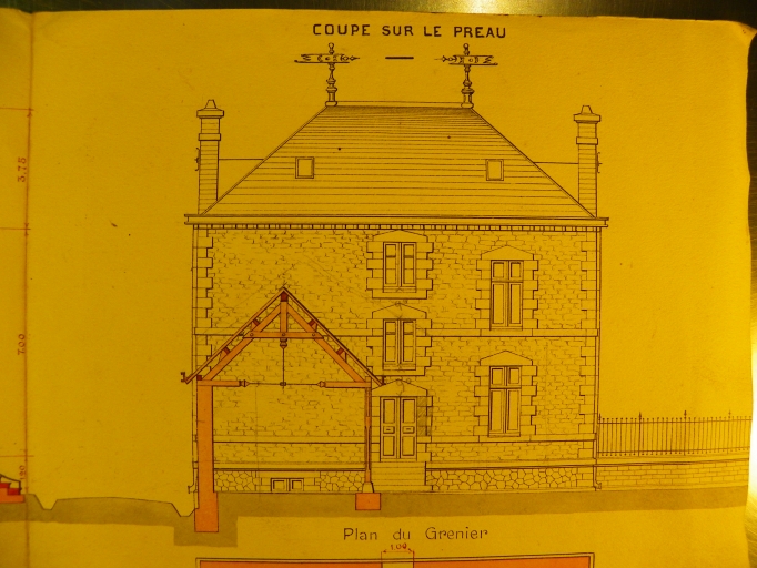 Elévation postérieure et coupe sur le préau, 1900Immatriculation