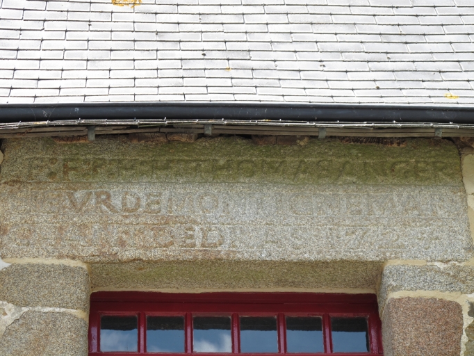 Maison de marchand : détail du linteau, FFP HH THOMAS ANGER SIEUR DE MONTIGNE MARCHAND DE DRAP 1724Immatriculation