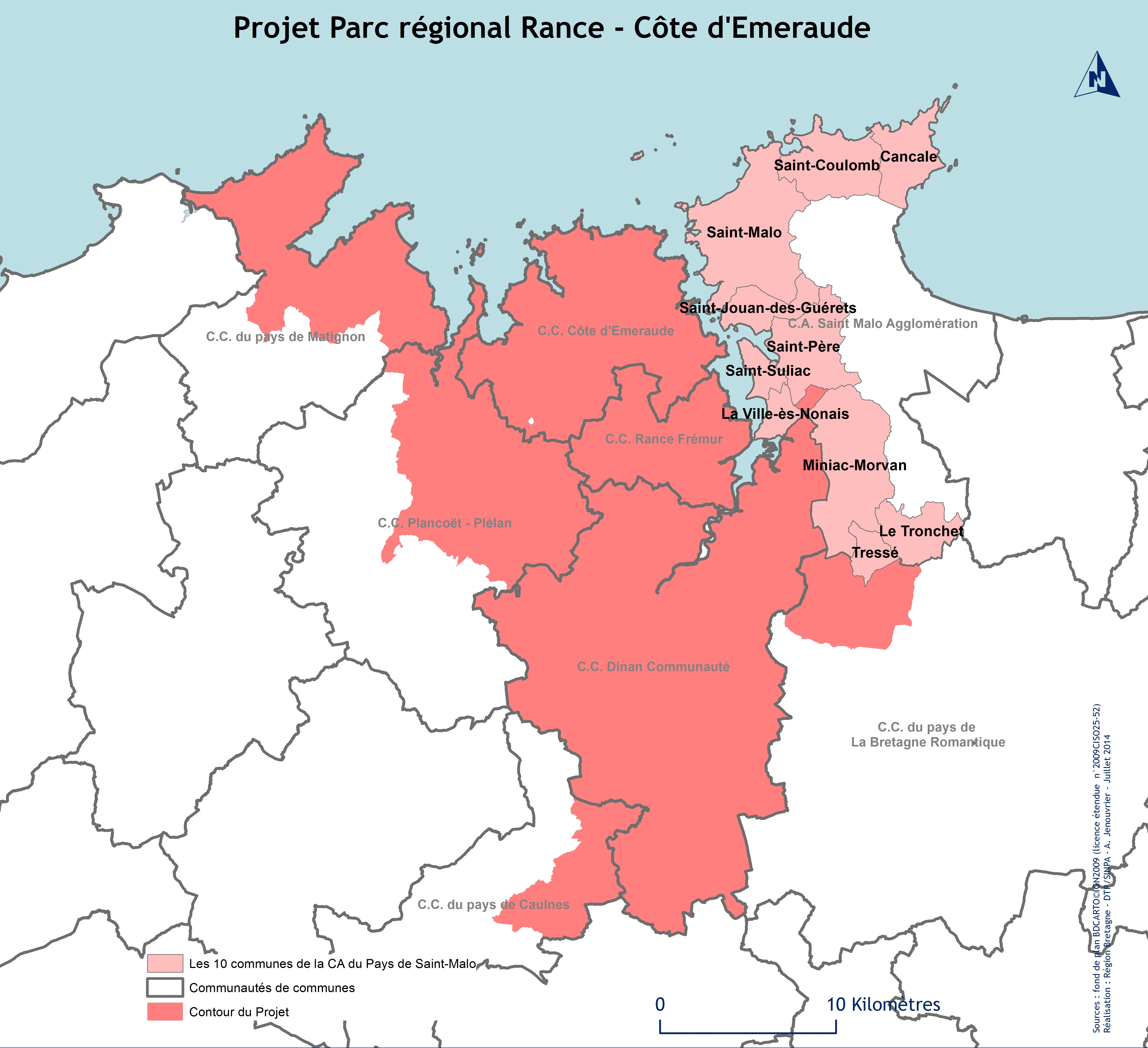 Carte de situation des 10 communes (en rose) de la CA du Pays de Saint-Malo dans le périmètre d'étudeImmatriculation