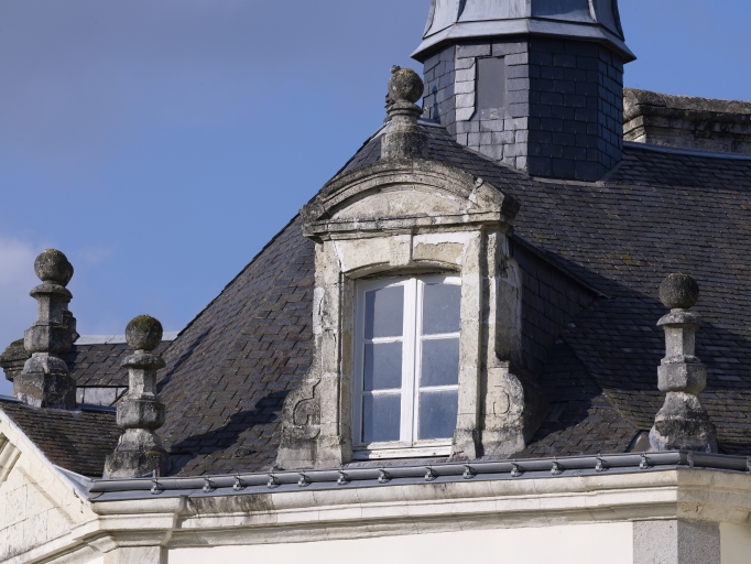 Elévation sud, avant-corps polygonal, détail lucarneImmatriculation