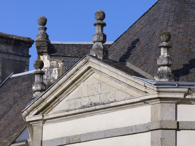 Elévation sud, avant-corps polygonale, détail fronton et amortissement en balustresImmatriculation