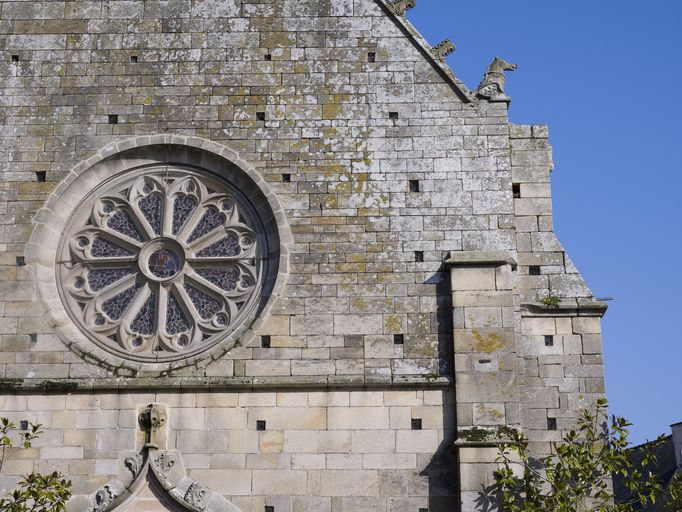 Église, élévation ouest : la rosace dans le pignon sud (état en 2011)Immatriculation
