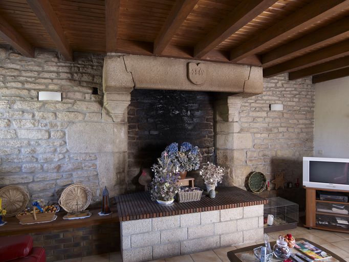 Maison de prêtre, logis de droite, mur nord : la cheminée (état en 2011)Immatriculation