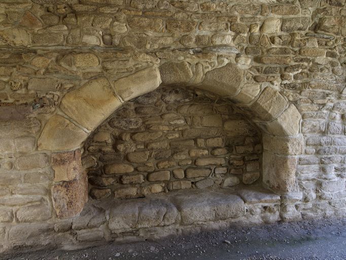 Manoir, corps de passage : de chaque côté, un "banc de garde" est inséré dans le mur (état en 2011)Immatriculation