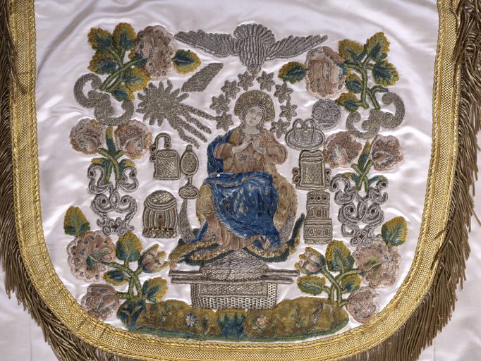 Ornement blanc : le chaperon de la chape (état en 2010)Immatriculation