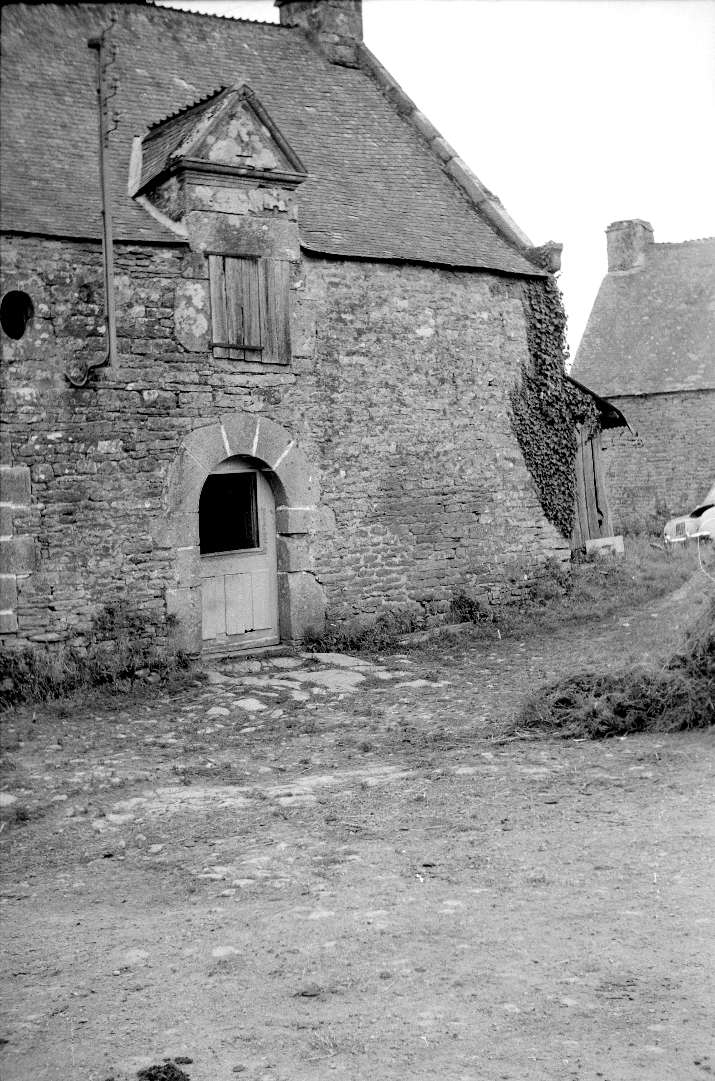 La Grée Boury, maison de prêtre datée 1644 : date et inscription IHS sur le linteau de la lucarne (état en 1969)Immatriculation