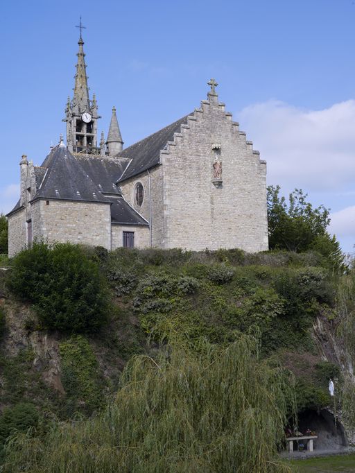 L'église et la grotte de Lourdes : vue générale prise depuis l'est (état en 2011)Immatriculation