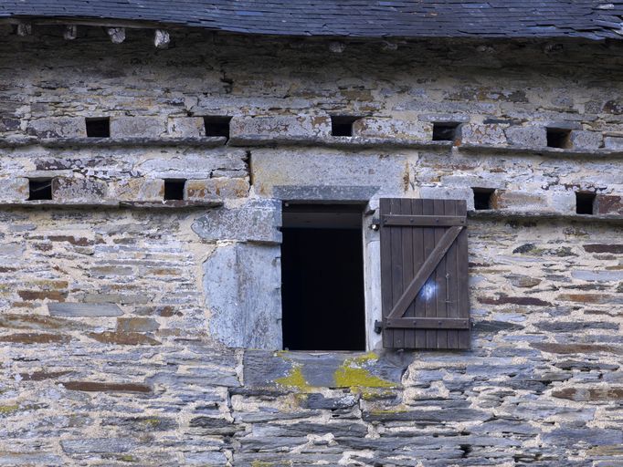 Manoir, logis nord, élévation est : les boulins et la baie du 1er étage (état en 2011)Immatriculation