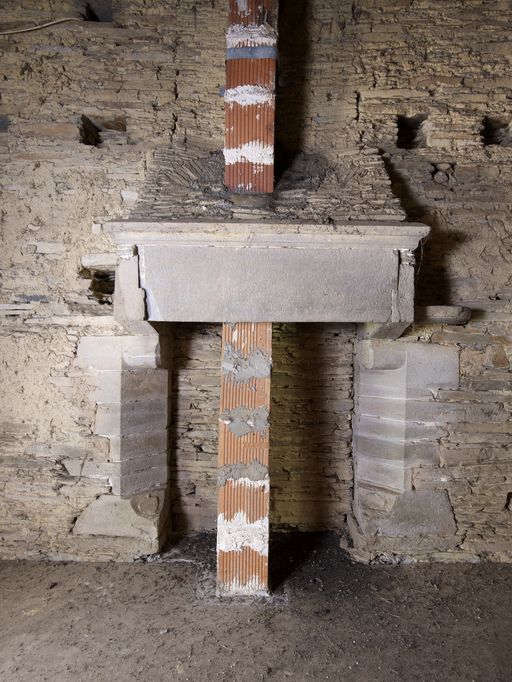 Manoir, logis nord, 1er étage, pièce sud : cheminée contre le mur sud (état en 2011)Immatriculation