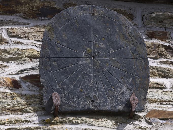 Église paroissiale, transept, bras sud : cadran solaire daté 1657 (état en 2011)Immatriculation
