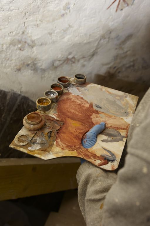 Pendant la restauration : la palette de la restauratriceImmatriculation