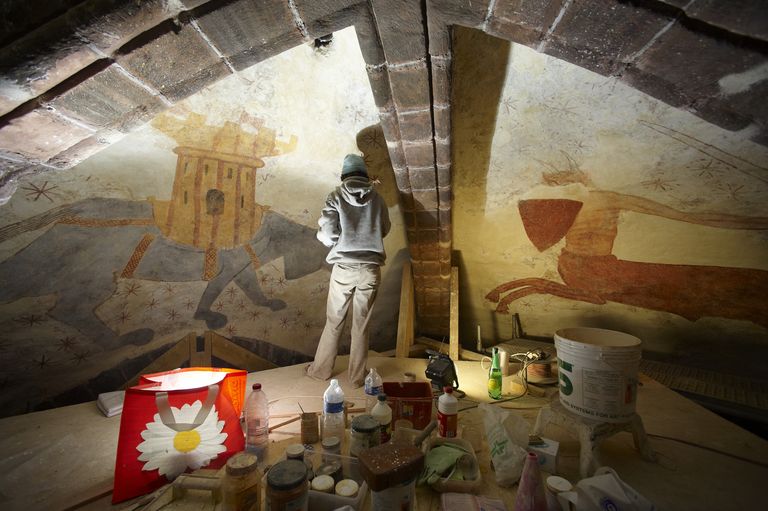 Pendant la restauration : le chantier au niveau de la voûteImmatriculation