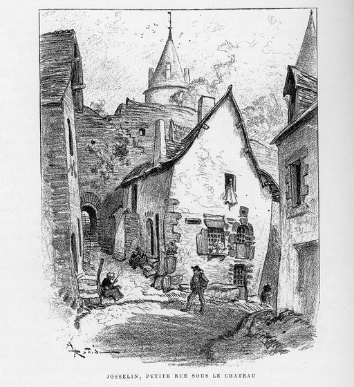 ' Josselin, petite rue sous le château '. Gravure, 1891Immatriculation