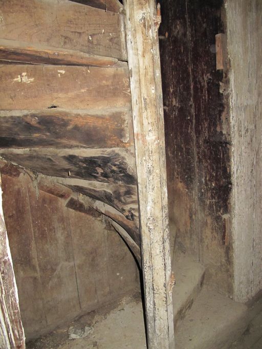 Etage de comble, revers des marches de l'escalier à vis desservant le grenierImmatriculation