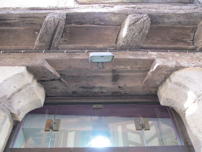 Maison vers l'est, rez-de-chaussée, encorbellement, travée centrale, détailImmatriculation