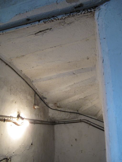 Tour d'escalier, dessous de la volée du premier étage, marches scellées partiellement délardéesImmatriculation