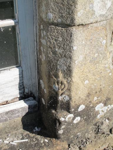 Motif sculpté à la base du piédroit de la porte du 2e logisImmatriculation