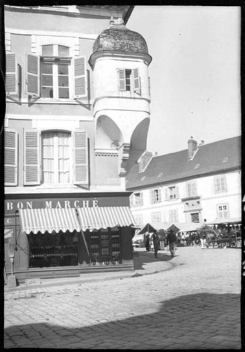 Vue de l'hôtel (à droite de l'hôtel de Francheville). Photographie ancienne, 1901, par Lucien Roy, architecte. Société Française d'Archéologie et Ministère de la Culture (France) - Médiathèque de l'architecture et du patrimoine - diffusion RMN.Immatriculation
