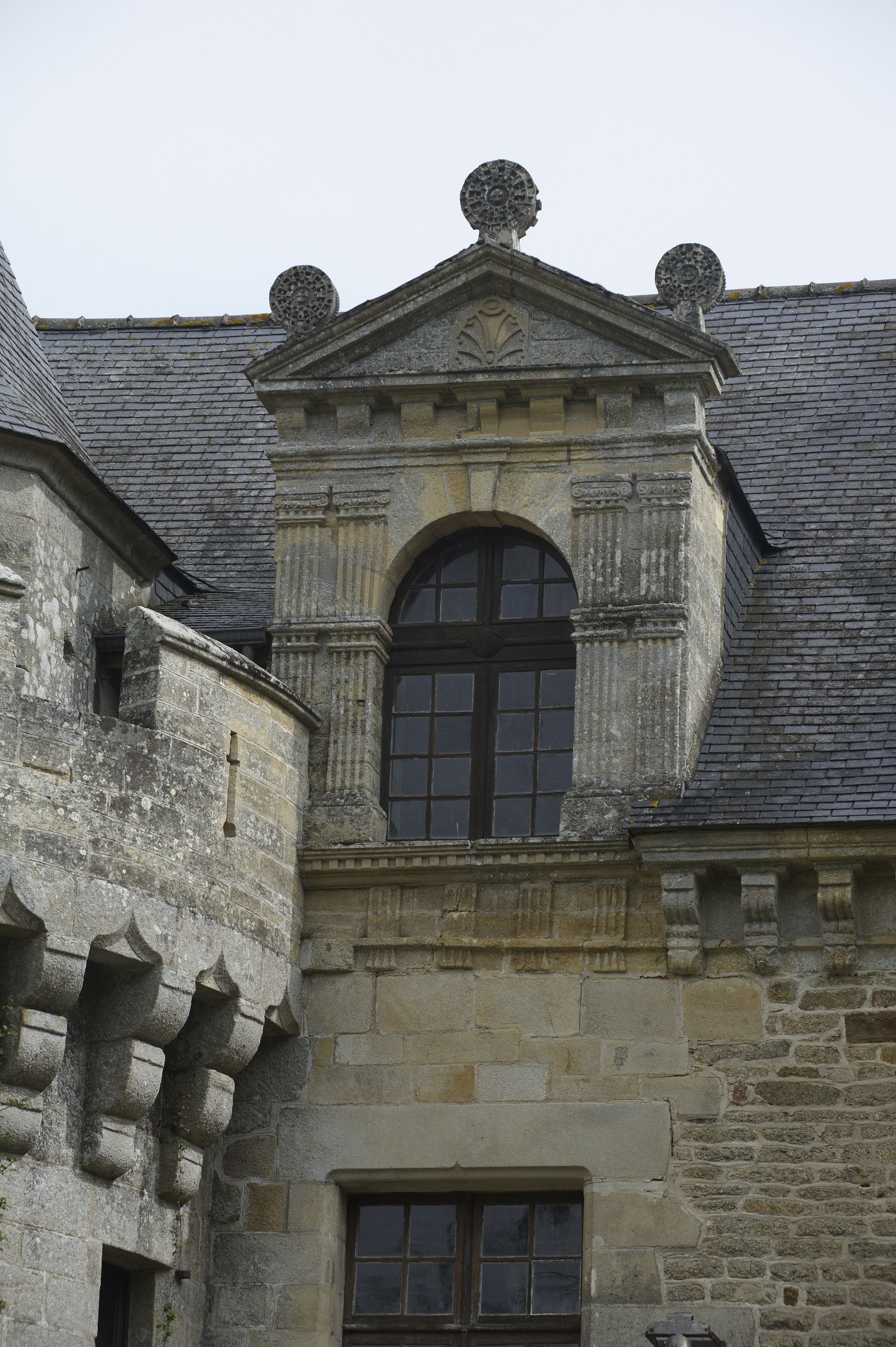 Détail : partie haute de la tour et lucarne en falunImmatriculation