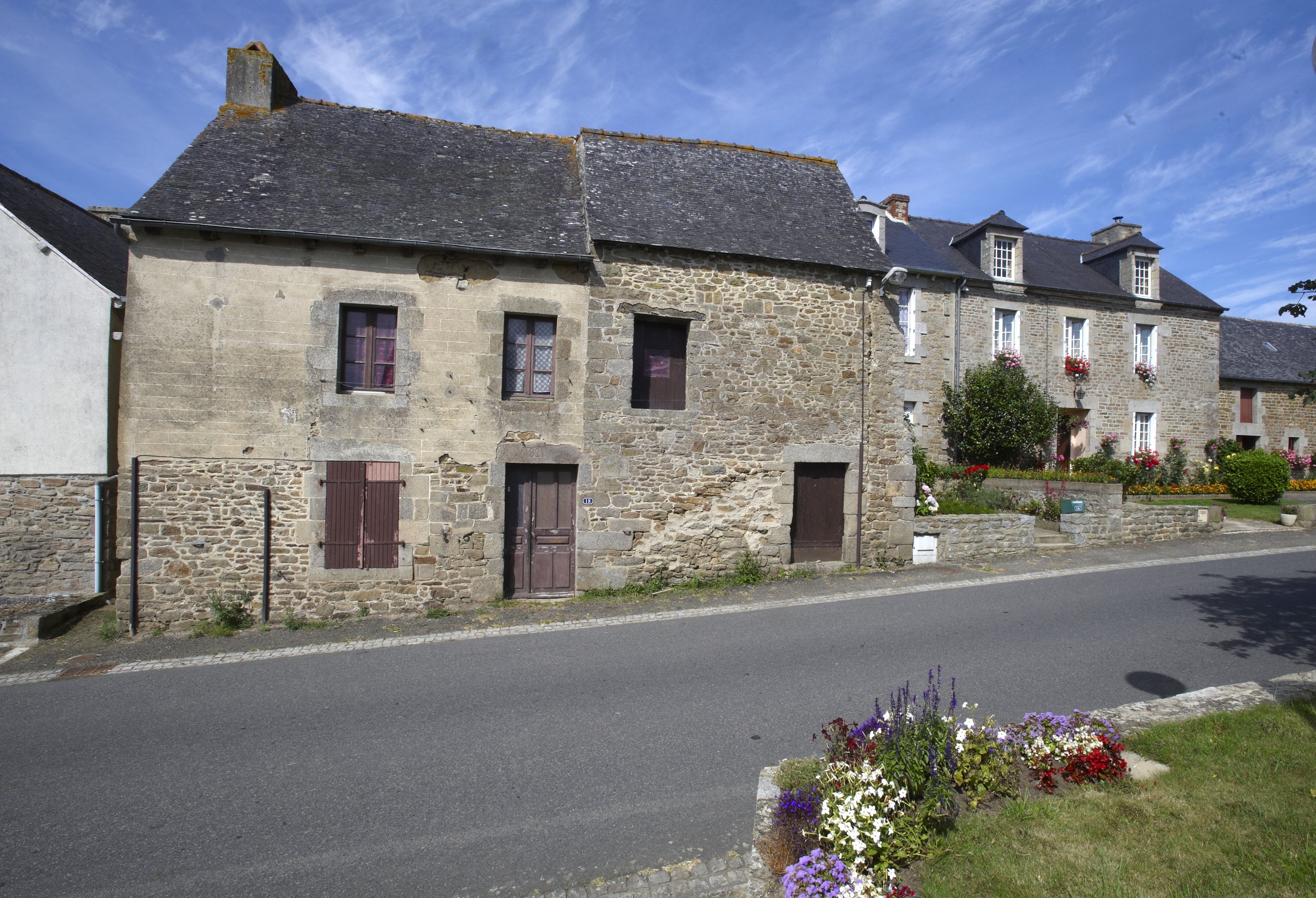 Ferme datée 1821. Mise en oeuvre mite caractéristique avec un enduit présentant un faux appareil de pierresImmatriculation