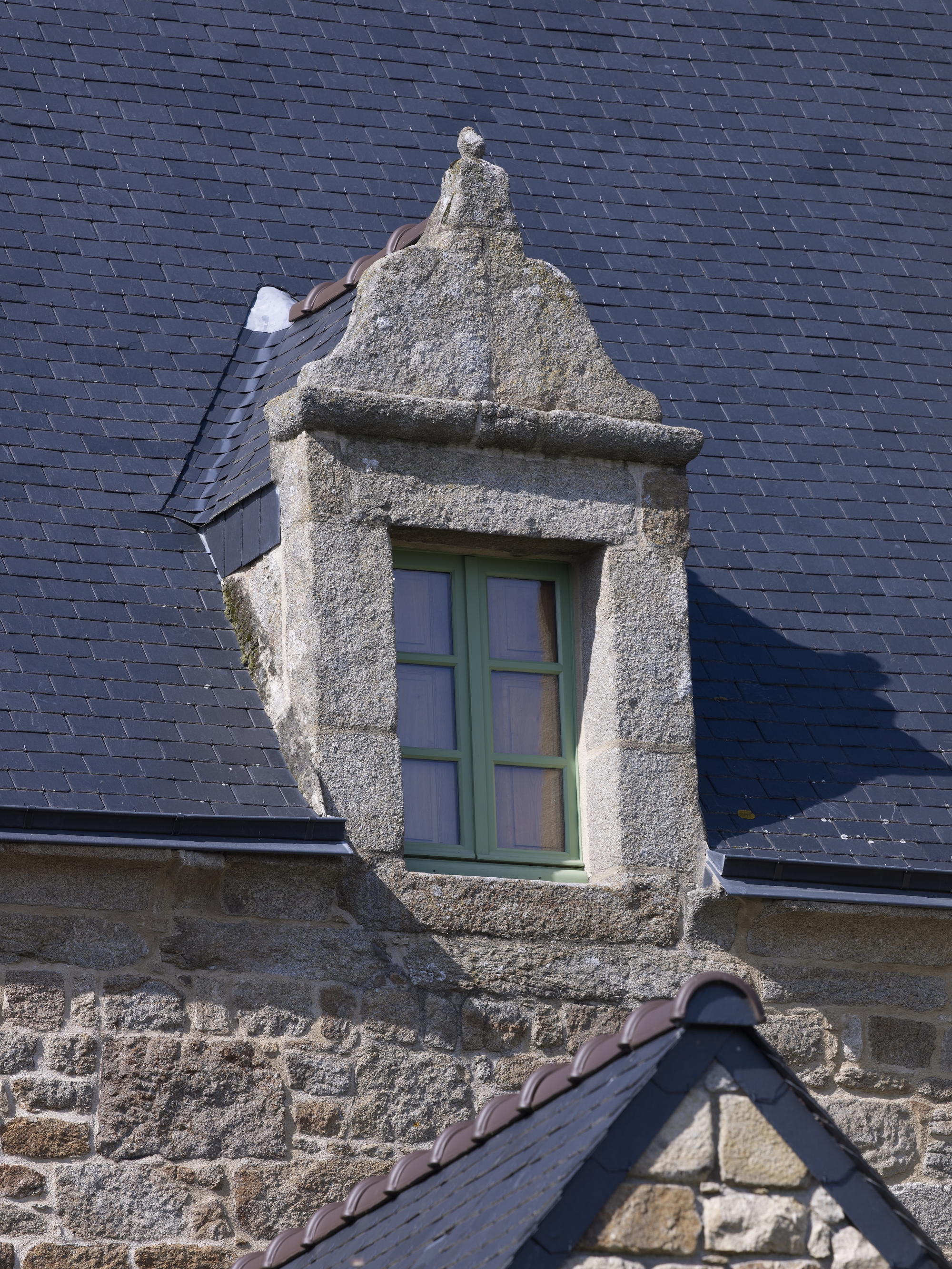 Plouaret, place de l'Eglise : maison, élévation postérieure, détail de la lucarneImmatriculation