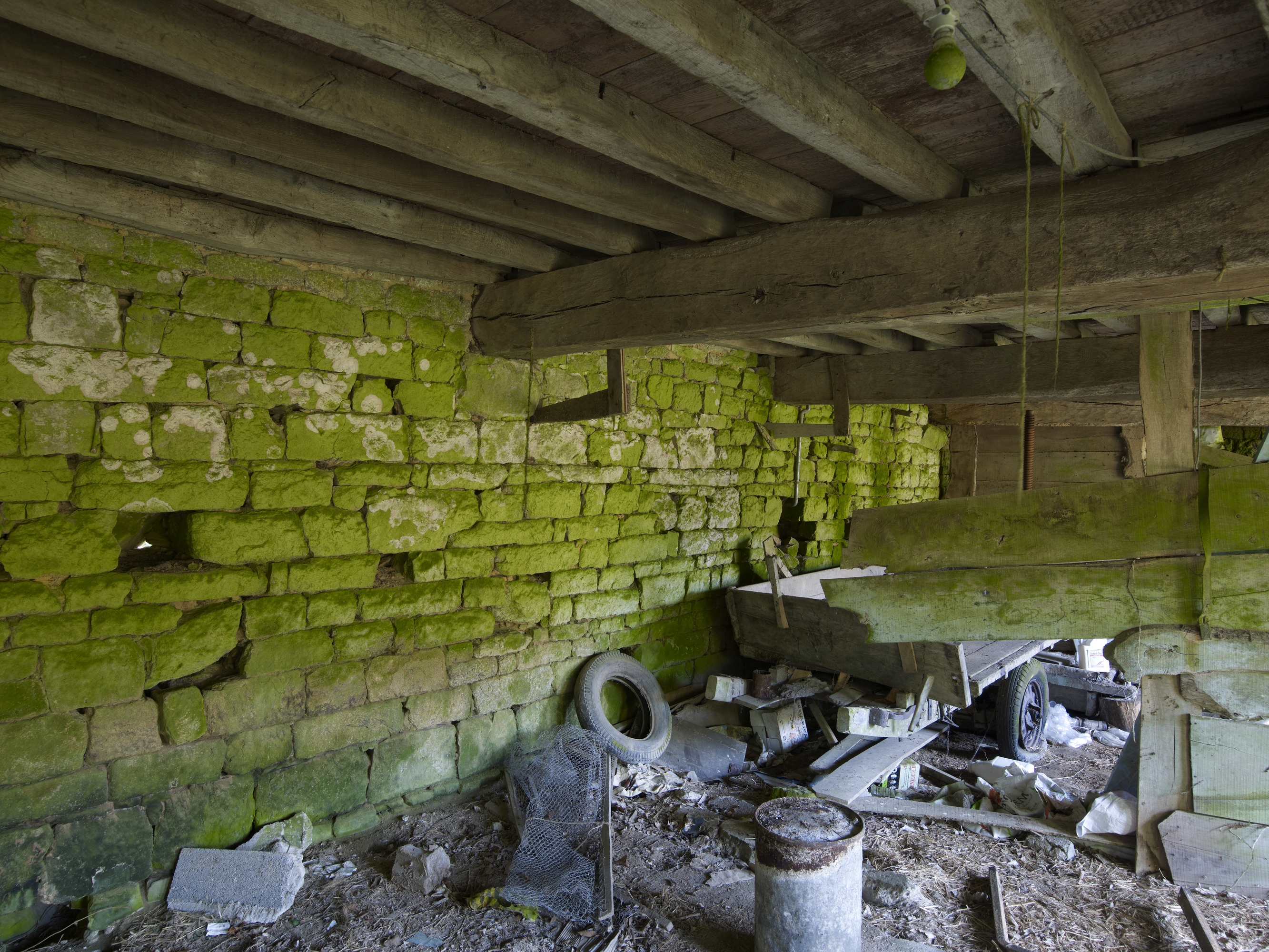 Plouaret, Guernanchanay : manoir et cour intérieure. Elévation nord. La galerie servant de remiseImmatriculation