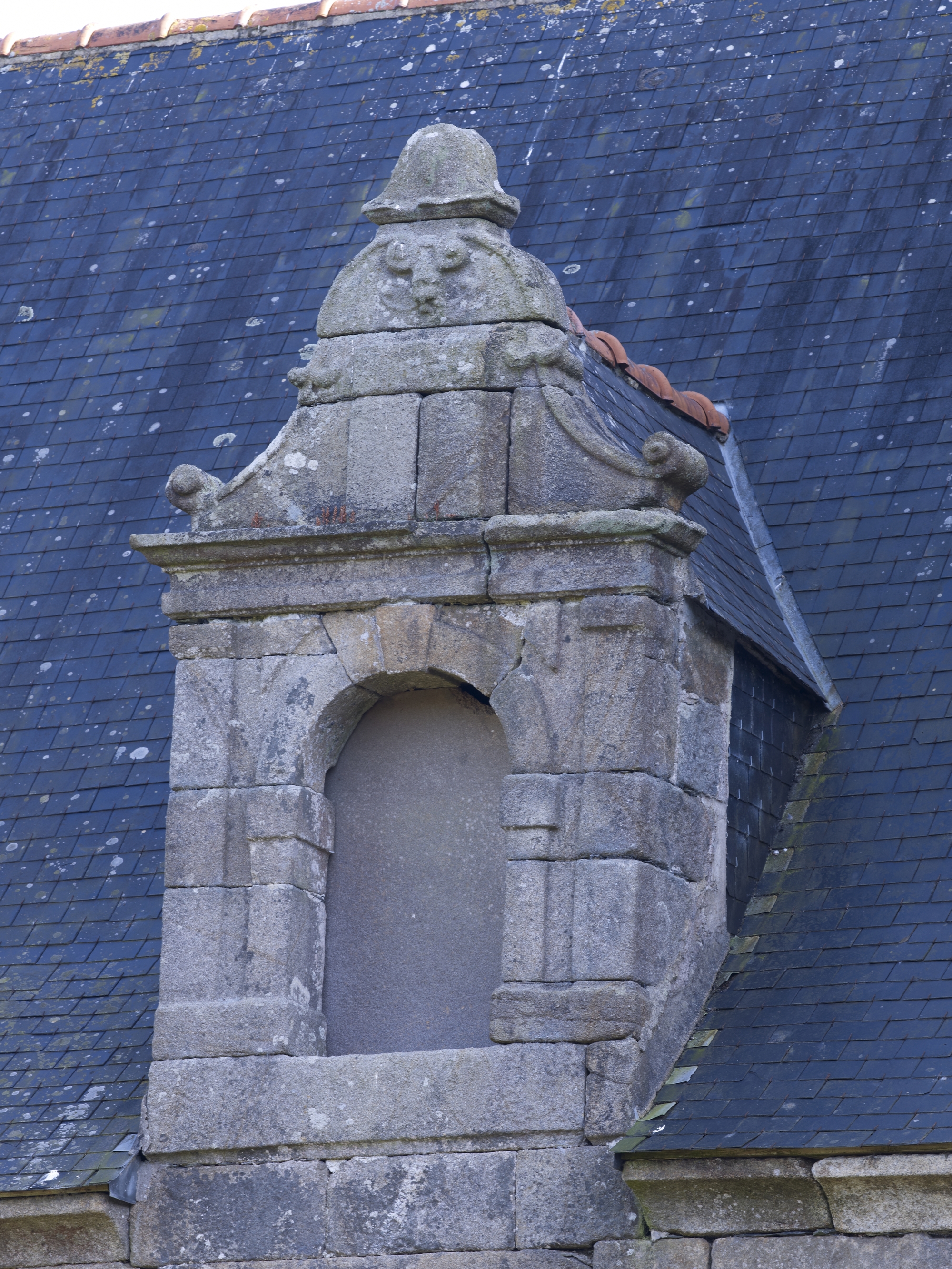 Plouaret, Guernanchanay : manoir et cour intérieure. Elévation nord, détail de la lucarne axiale (en position centrale)Immatriculation