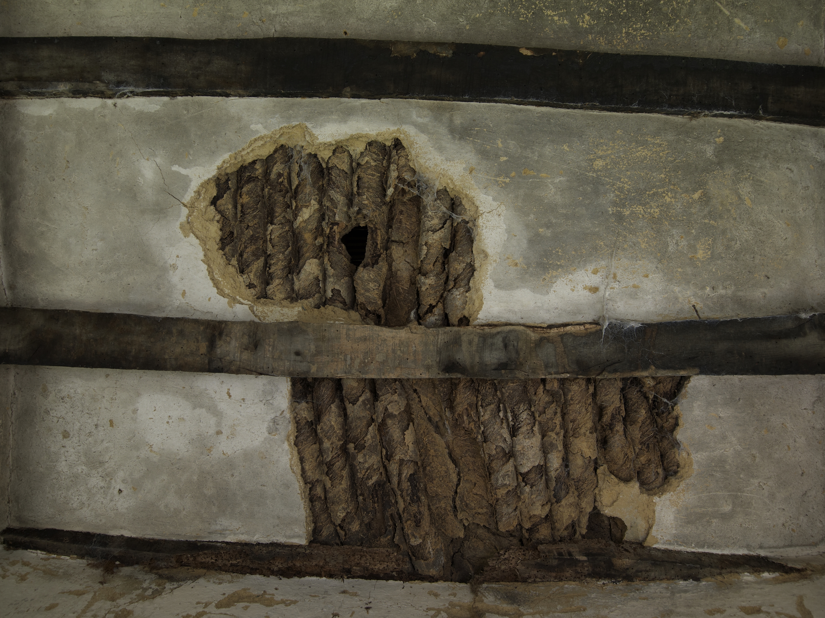 Plouaret, Guilquin : logis est (B), solives, remplissage avec des quenouilles (cylindres constitués de baguettes de châtaignier, de terre et de foin), enduites et blanchies au lait de chauxImmatriculation