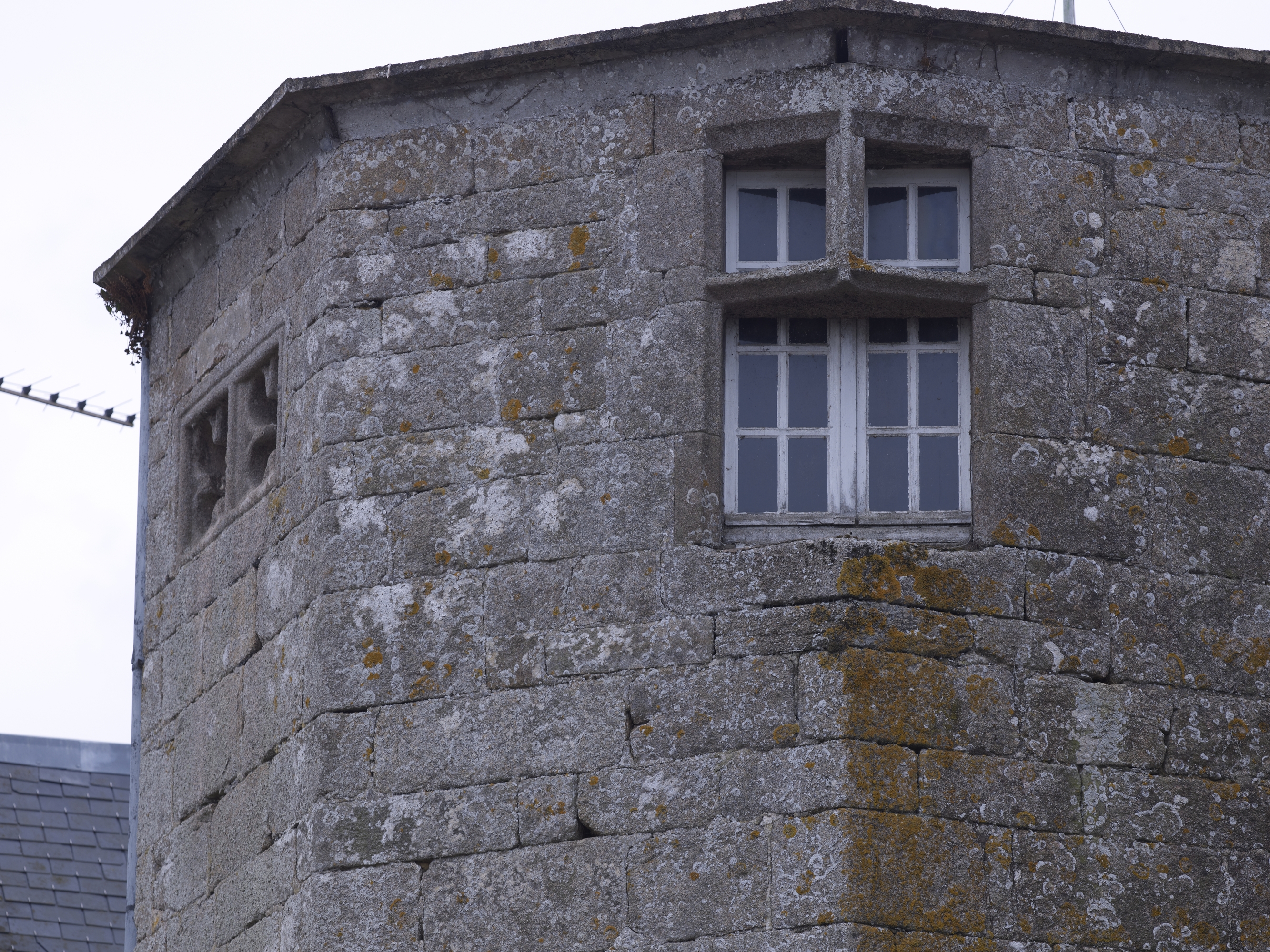 Plouaret, La Haye : tour d'escalier du manoir datable de la 1ère moitié du 15e siècle, fenêtre à meneauxImmatriculation