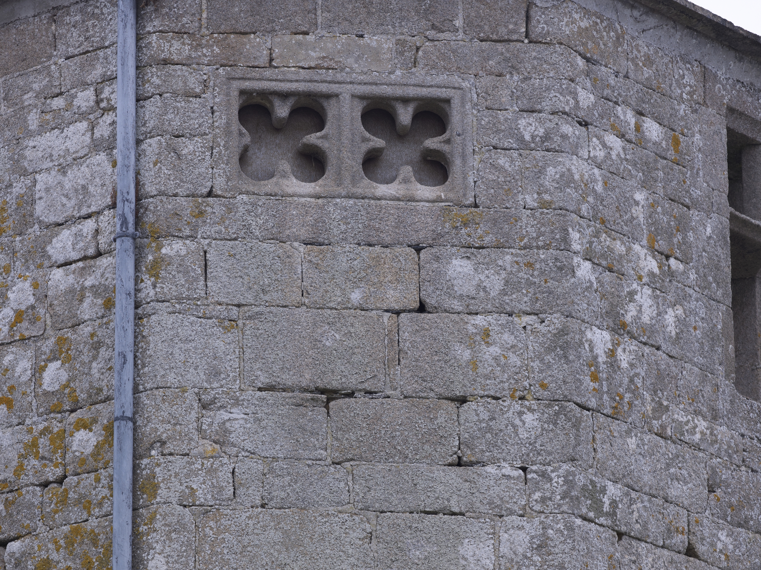 Plouaret, La Haye : tour d'escalier du manoir datable de la 1ère moitié du 15e siècle, quadrilobe (vers l'est)Immatriculation