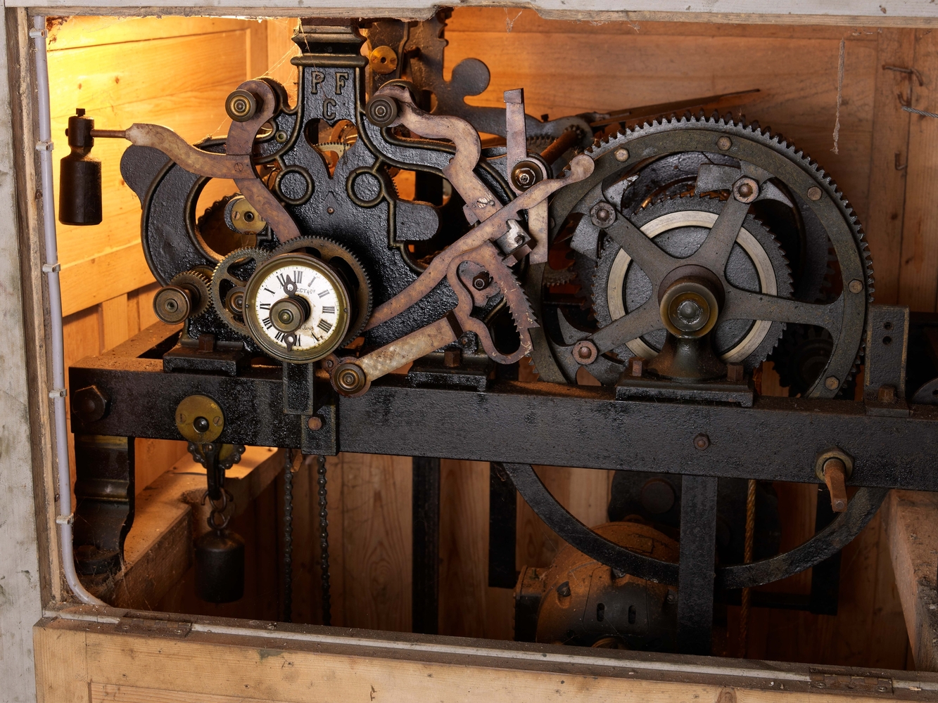 Vue intérieure, mécanisme de l'horlogeImmatriculation