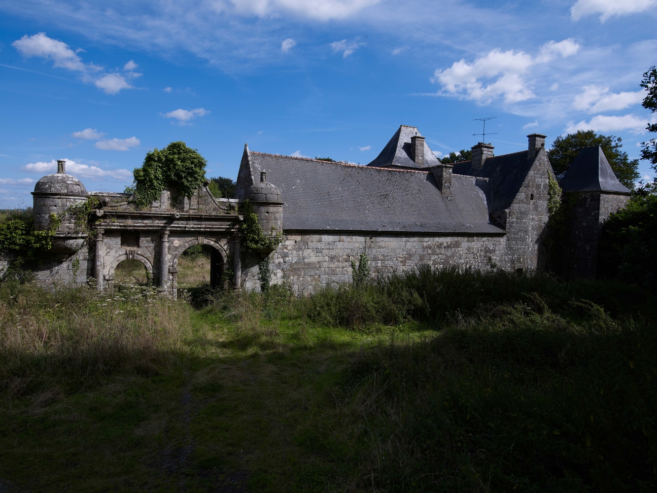 Plouaret, Guernanchanay : portail monumental du manoir comprenant une porte charretière et une porte piétonne encadrées de deux guéritesImmatriculation