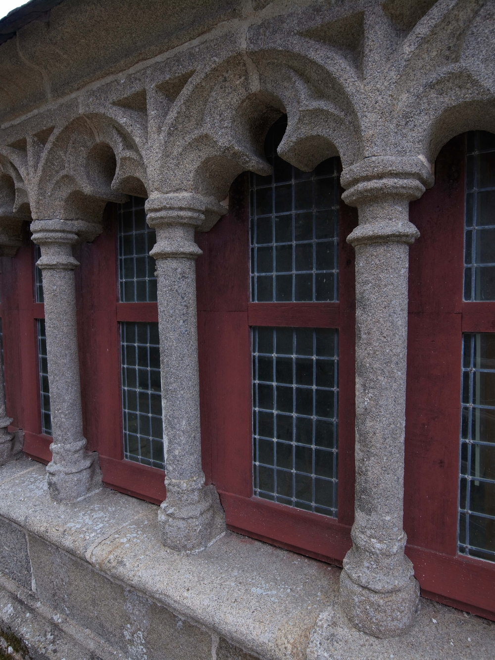 Lanvellec, le bourg : ossuaire, élévation antérieure orientée sud-est, arcades à arc trilobé séparées par des colonnettes jumeléesImmatriculation