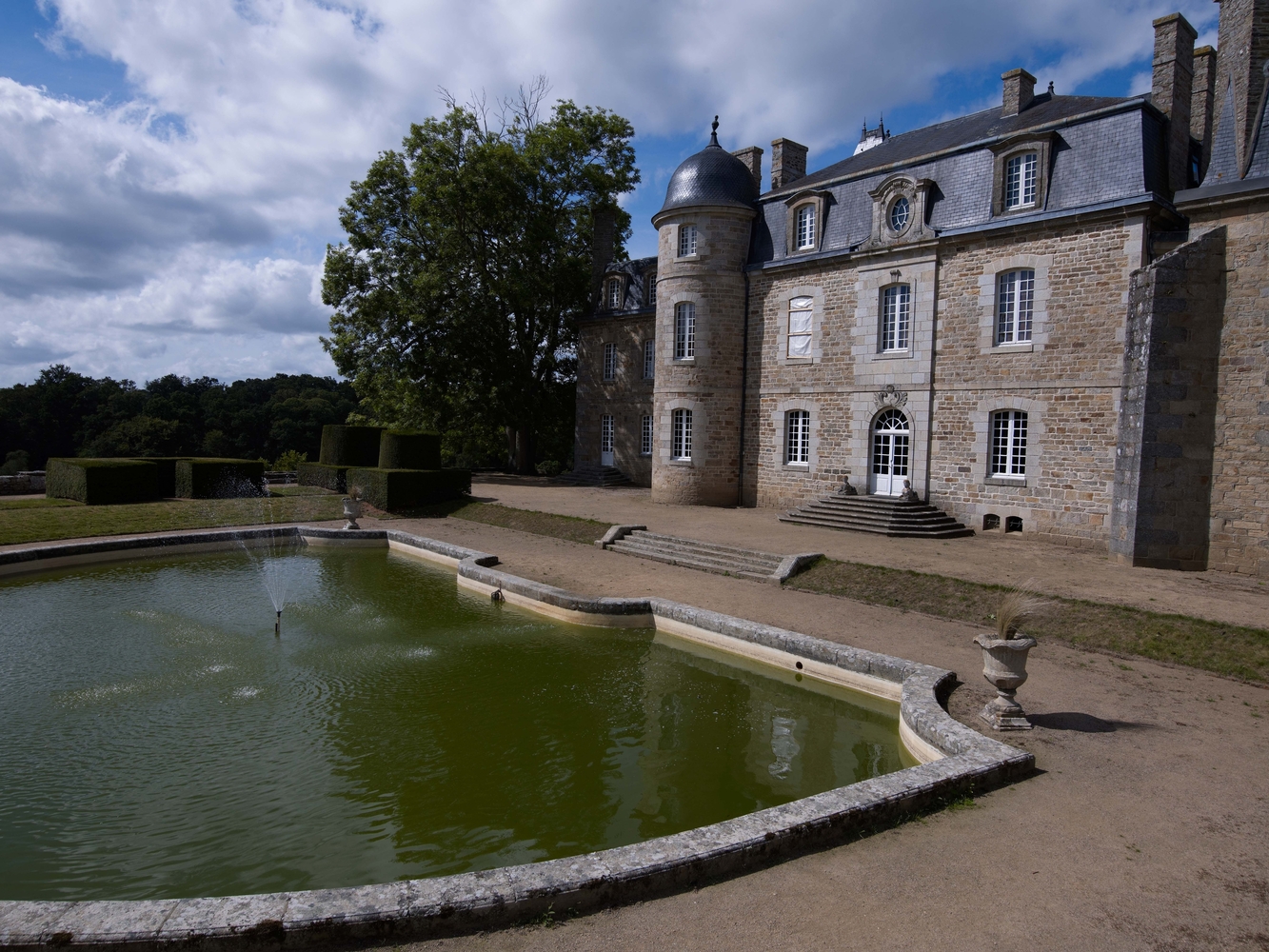 Vue de l'élévation orientée vers le sud-est. Au premier plan, le miroir d'eauImmatriculation