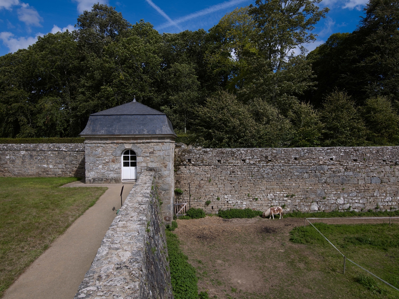 Vue du pavillon de jardin de l'angle sud-est aménagé sur le mur de clôture retenant également la terre des terrassesImmatriculation