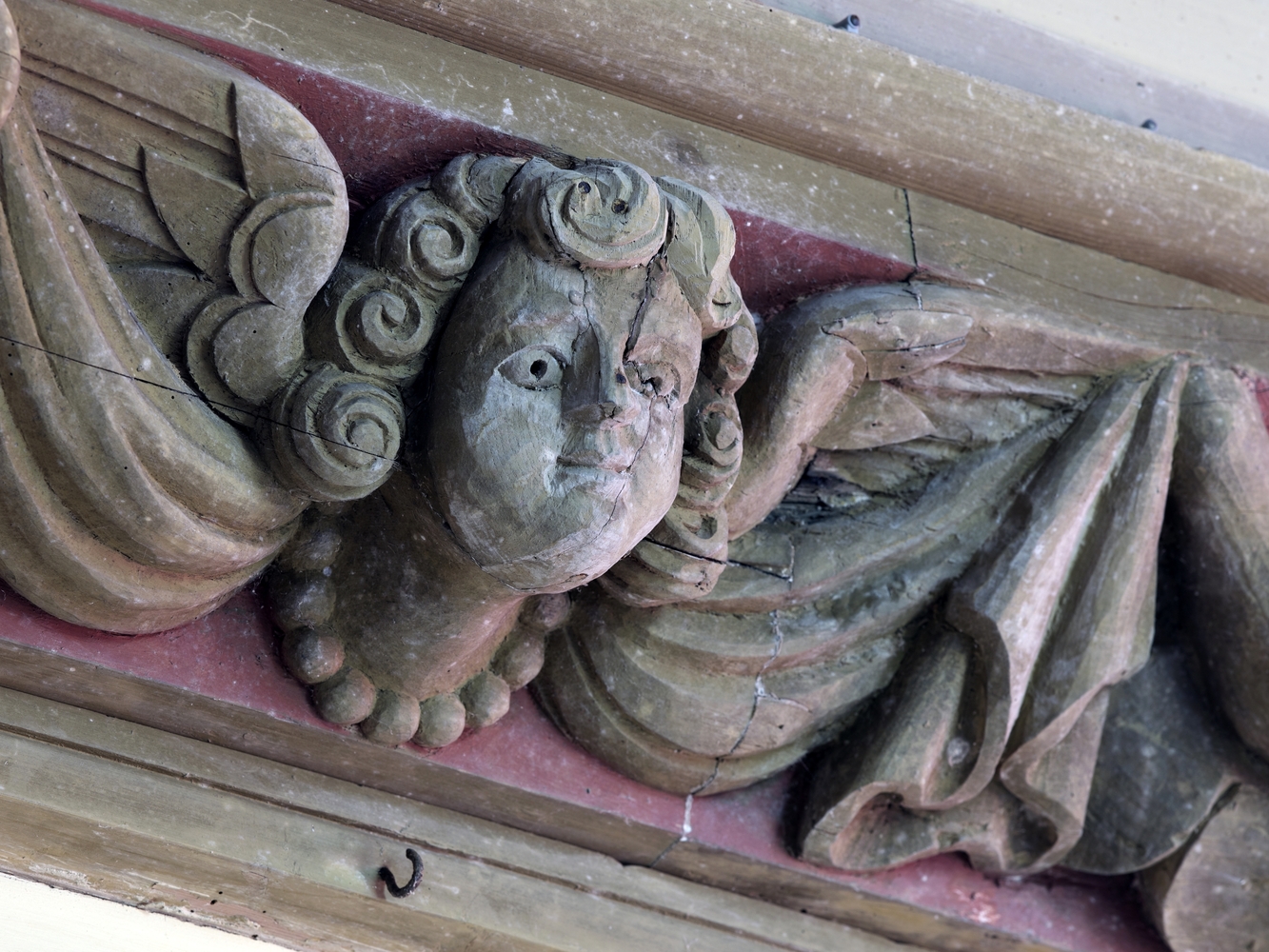 Lanvellec, Saint-Carré : chapelle Notre-Dame-de-Pitié, vue intérieure, décor de la sablière de la nefImmatriculation