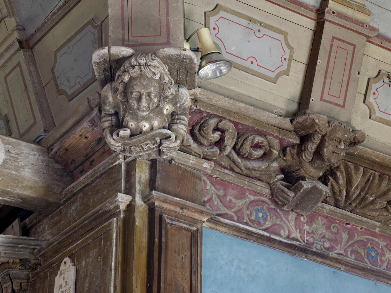 Lanvellec, Saint-Carré : chapelle Notre-Dame-de-Pitié, vue intérieure, blochet situé à la croisée des transeptsImmatriculation
