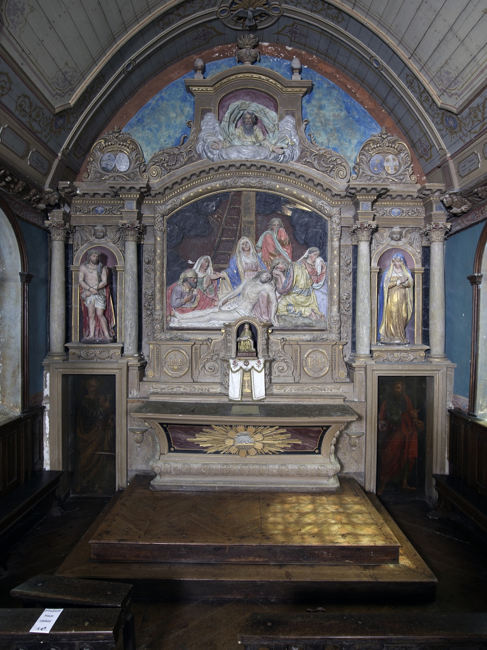 Lanvellec, Saint-Carré : chapelle Notre-Dame-de-Pitié, vue intérieure, vue générale du maître-autelImmatriculation