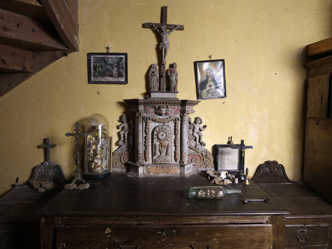 Lanvellec, Saint-Carré : chapelle Notre-Dame-de-Pitié, vue intérieure, ancien retableImmatriculation
