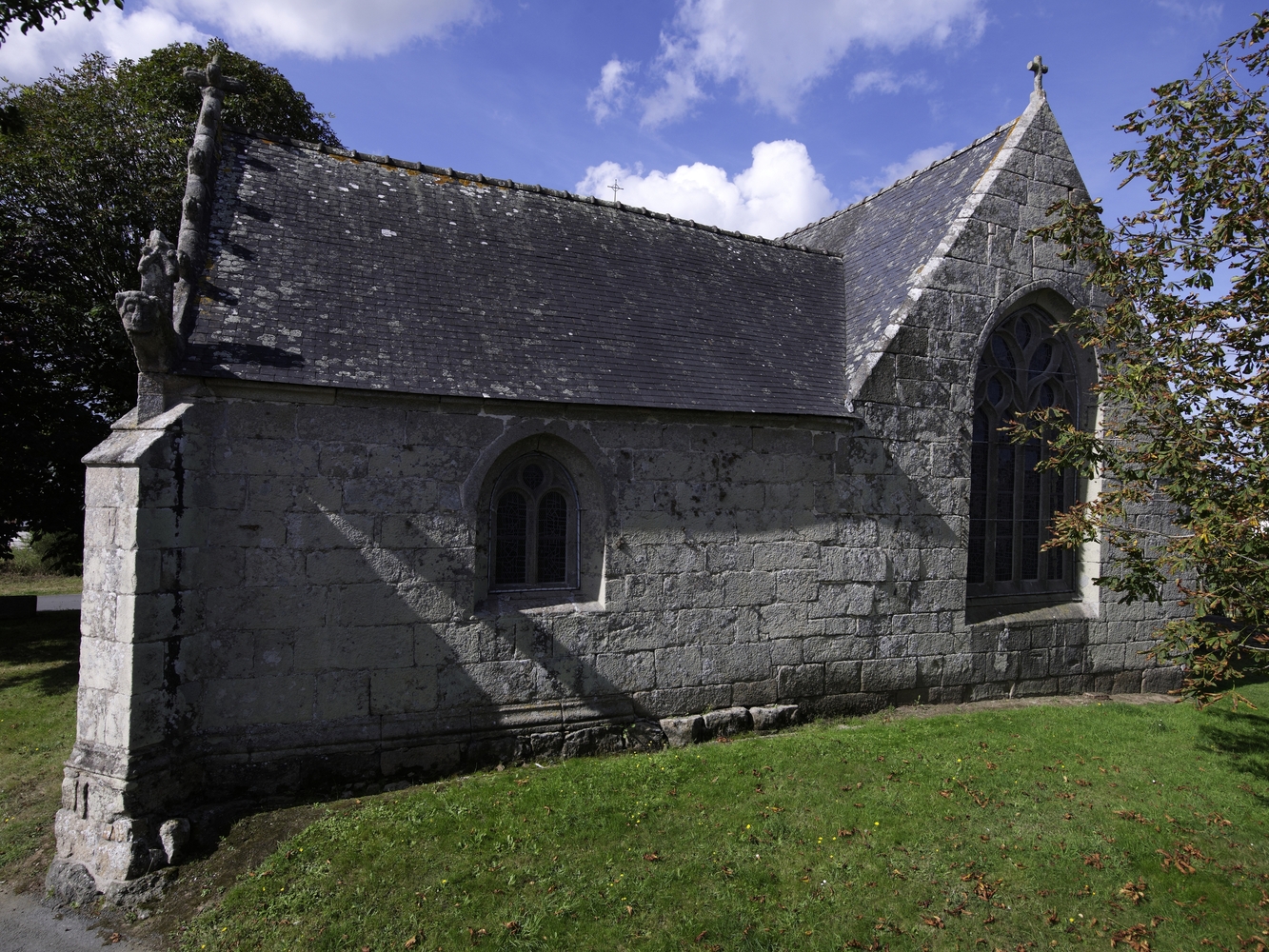 Lanvellec, Saint-Maudez : chapelle latérale au sud, chevet à baie à remplage de pierreImmatriculation
