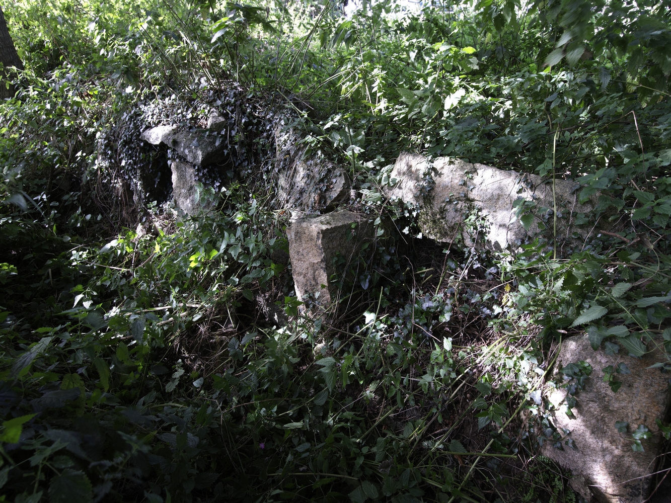Lanvellec, Goaz Ru : mur rucher adossé au talus du chemin menant anciennement à la chapelleImmatriculation