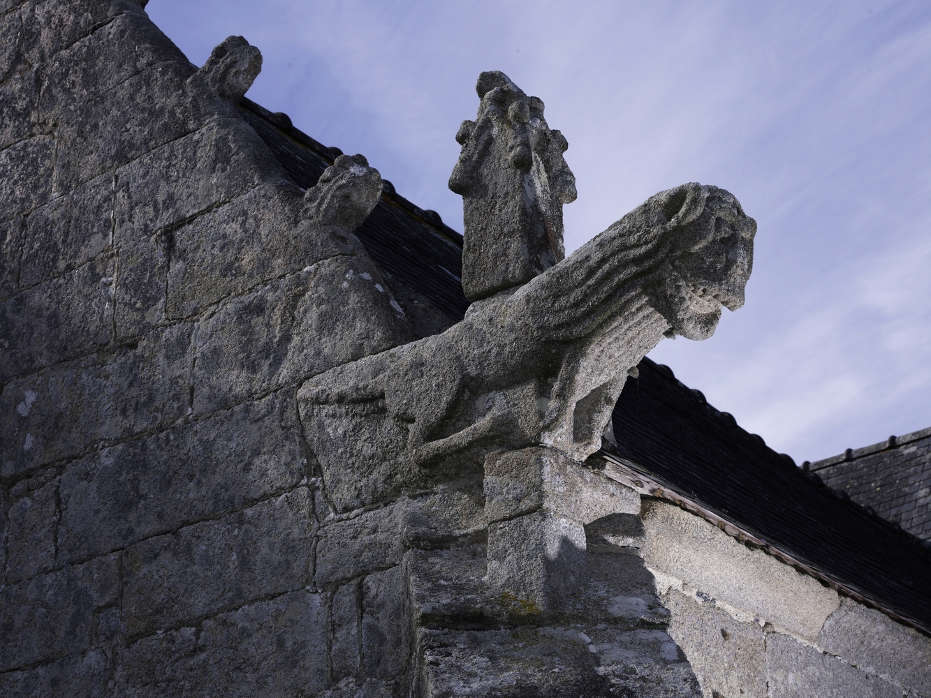 Lanvellec, Saint-Maudez : chapelle latérale au sud, angle sud-est, crossette sculptée représentant un lionImmatriculation
