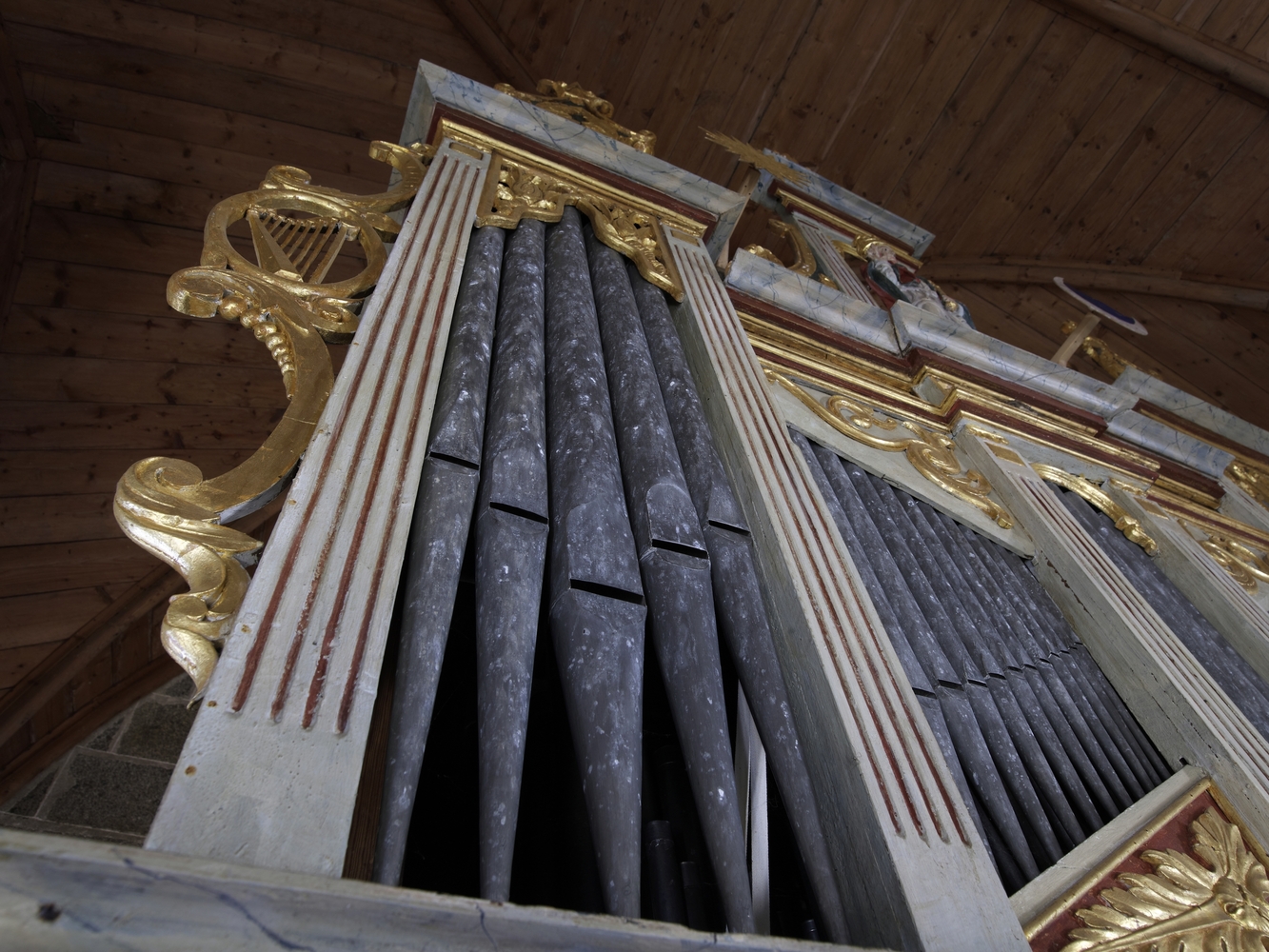 Vue intérieure, détail de l'orgue de Robert DallamImmatriculation
